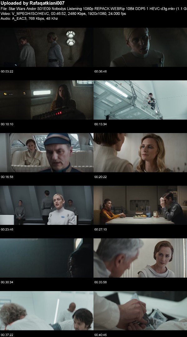 Feel free to post comments, reviews, or suggestions about Star Wars Andor S01E09 Nobodys Listening 1080p REPACK WEBRip 10Bit DDP5 1 HEVC-d3g including tutorials, audio books, software, videos, patches, and more.